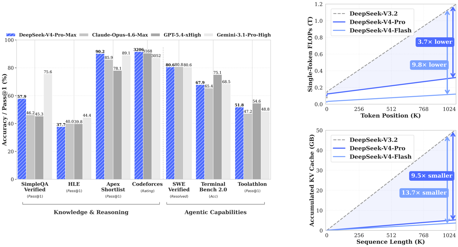 Os números nesta postagem do blog são do relatório técnico em DeepSeek_V4.pdf.